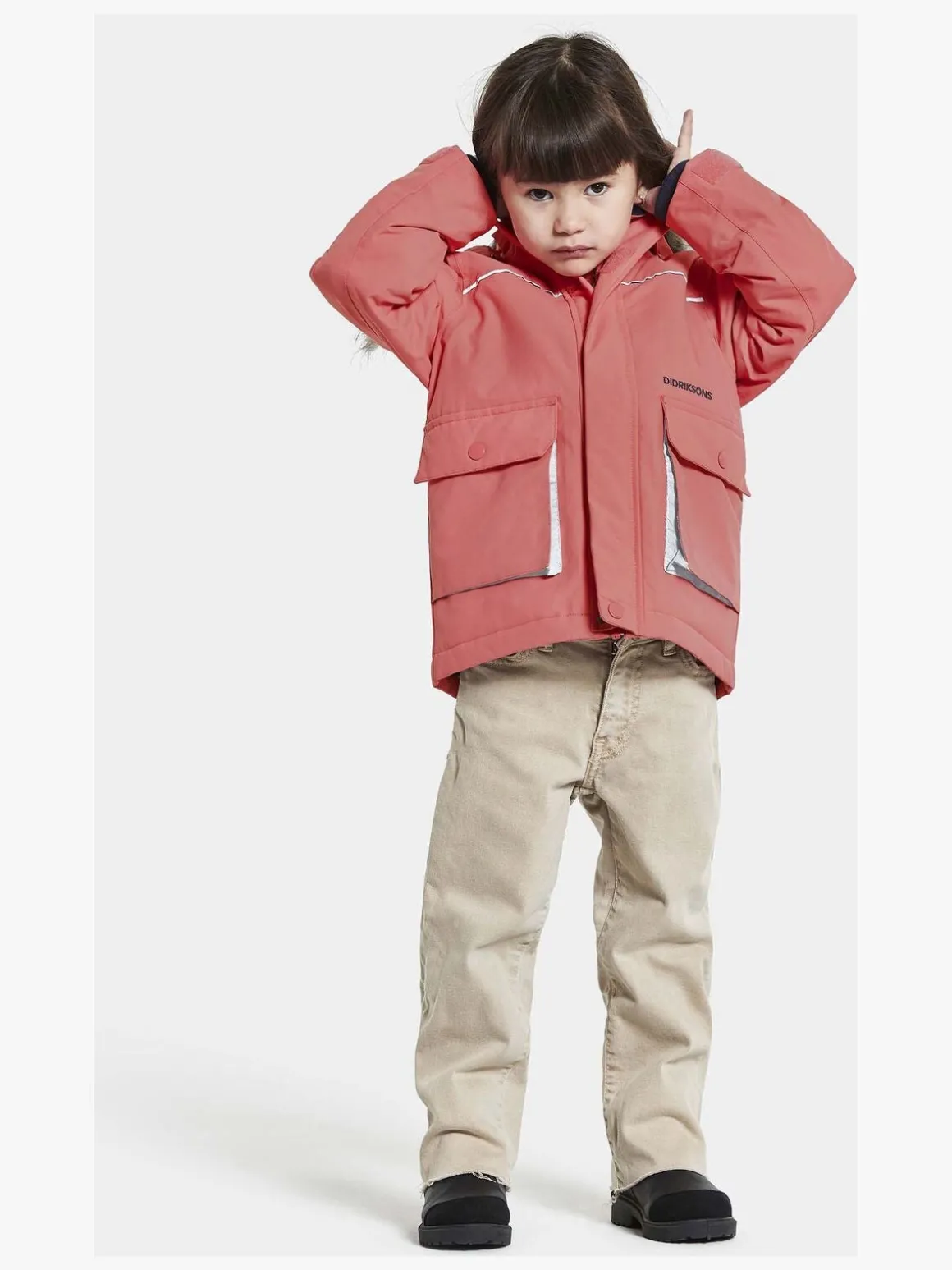 | Egenskaber | Vindtæt Refleksdetaljer Aftagelig hætte Vandtæt Tapede sømme |