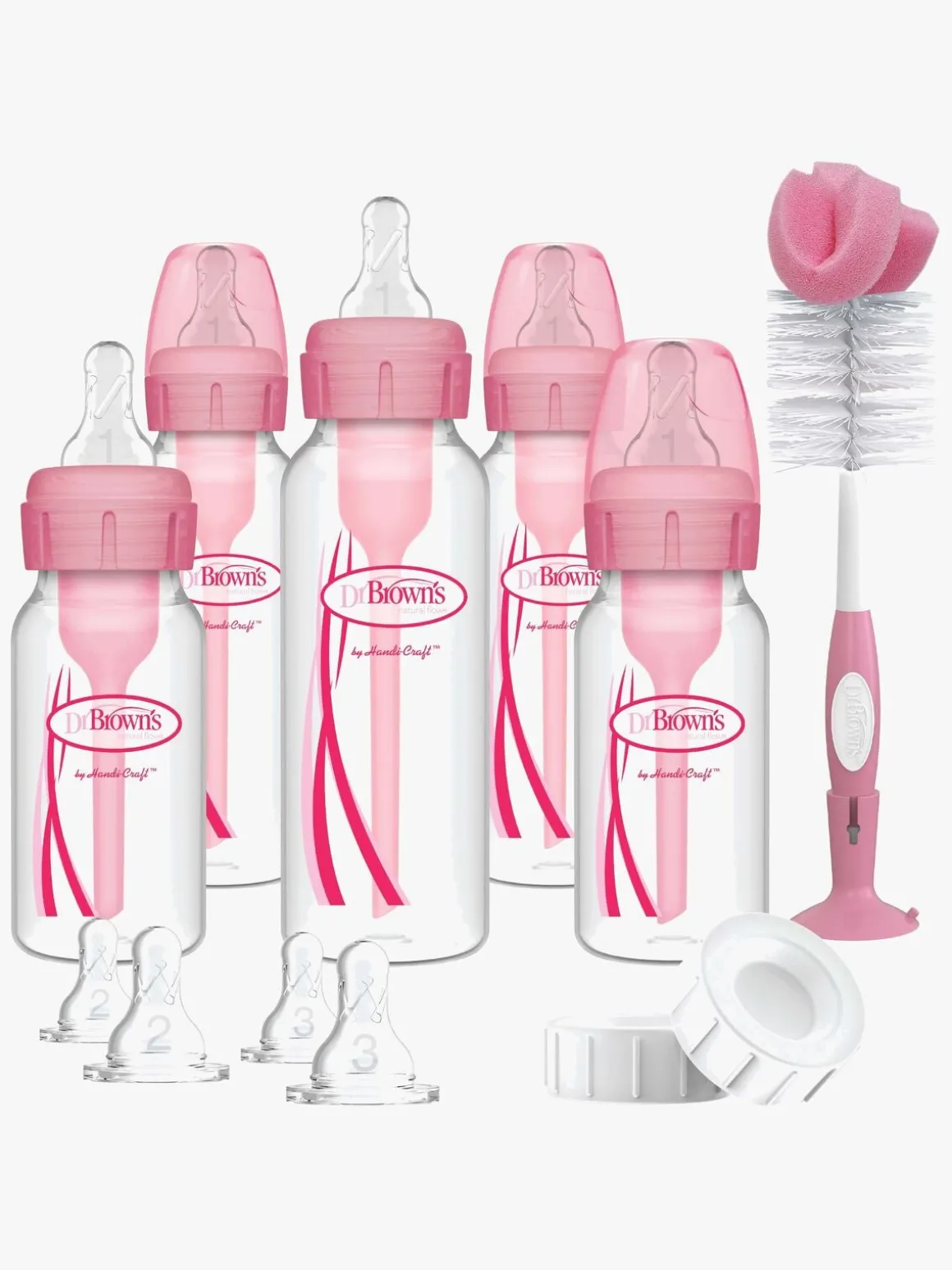 – Indeholder: 4 sutter, 1 stor børste, 3 små børster, 3 sutteflasker på 250 ml, 2 sutteflasker på 120 ml, 2 rejselåg.