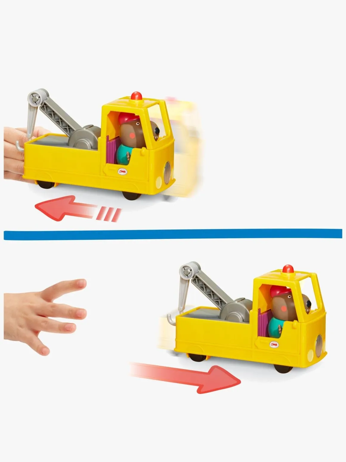 – Træk bjærgningsbilen tilbage eller giv den et skub, og se den køre afsted.