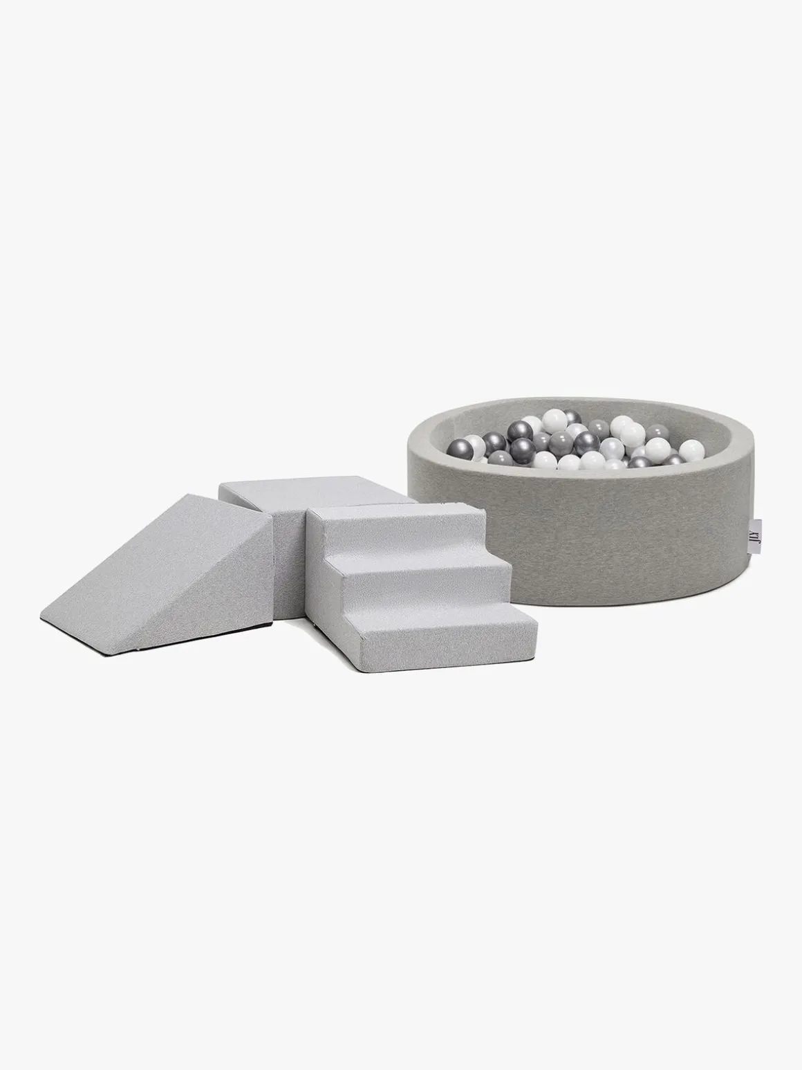 Dette skønne boldbassin er beklædt i blød, Oeko-Tex-certificeret bomuld og er fyldt med 150 bolde, der er fremstillet af giftfri PE-plast. Boldene kommer i farverne hvid, pearl, grå og sølv. Betrækket kan tages af og vaskes i maskinen, så du let kan fjerne pletter, hvis uheldet skulle være ude.