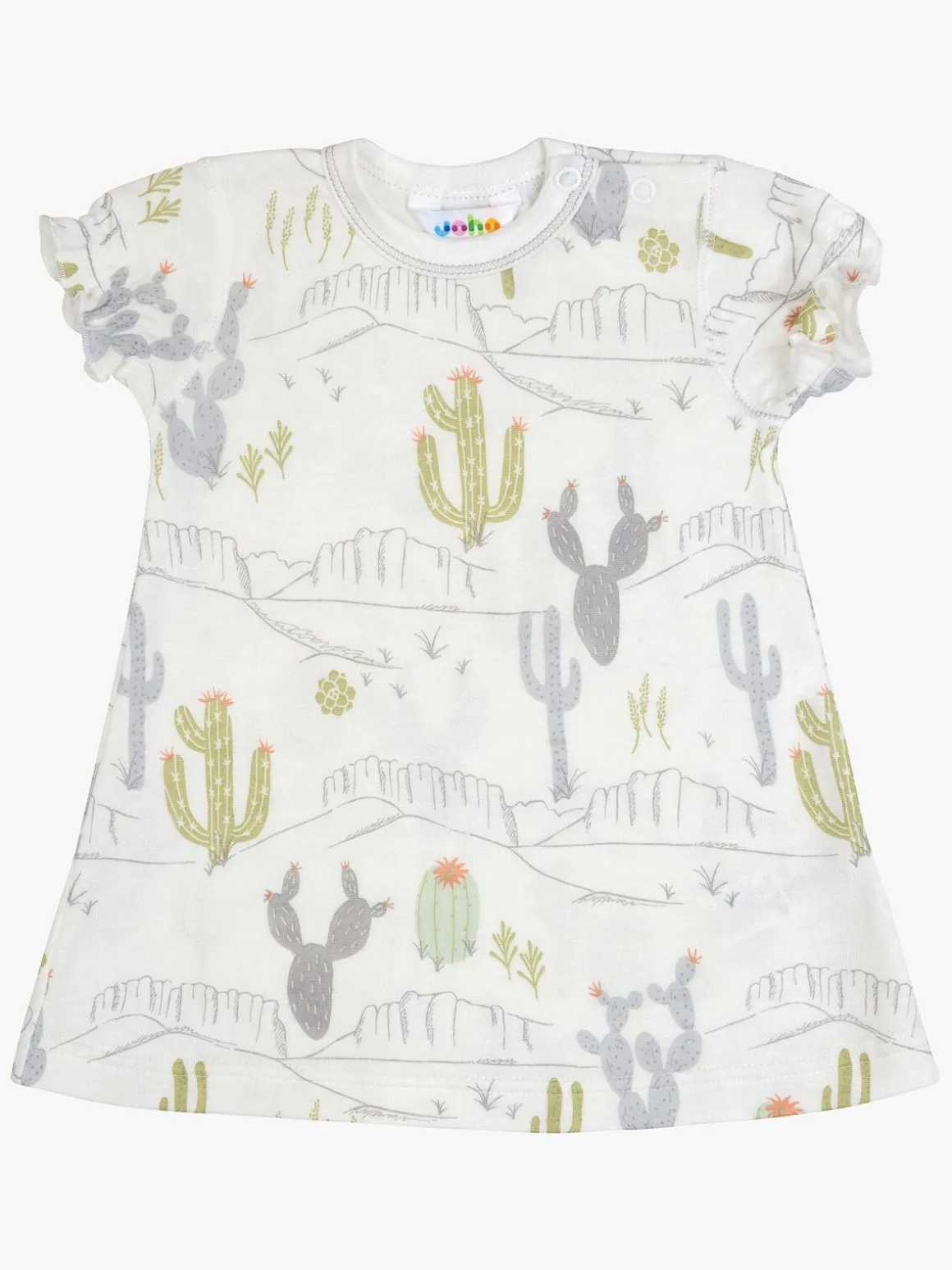 En sød strikket kjole fra Joha til de yngste. Den er lavet i økologisk bomuld med to trykknapper i tiden af kragen og er passer perfekt til hverdag eller festlige sammenkomster. Bomulden er svanemærket, hvilket gør kjolen til et miljøvenligt valg.
