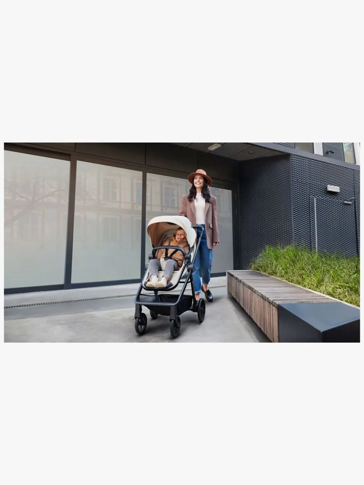 – Stor kaleche med vandtæt belægning og UPF50+.