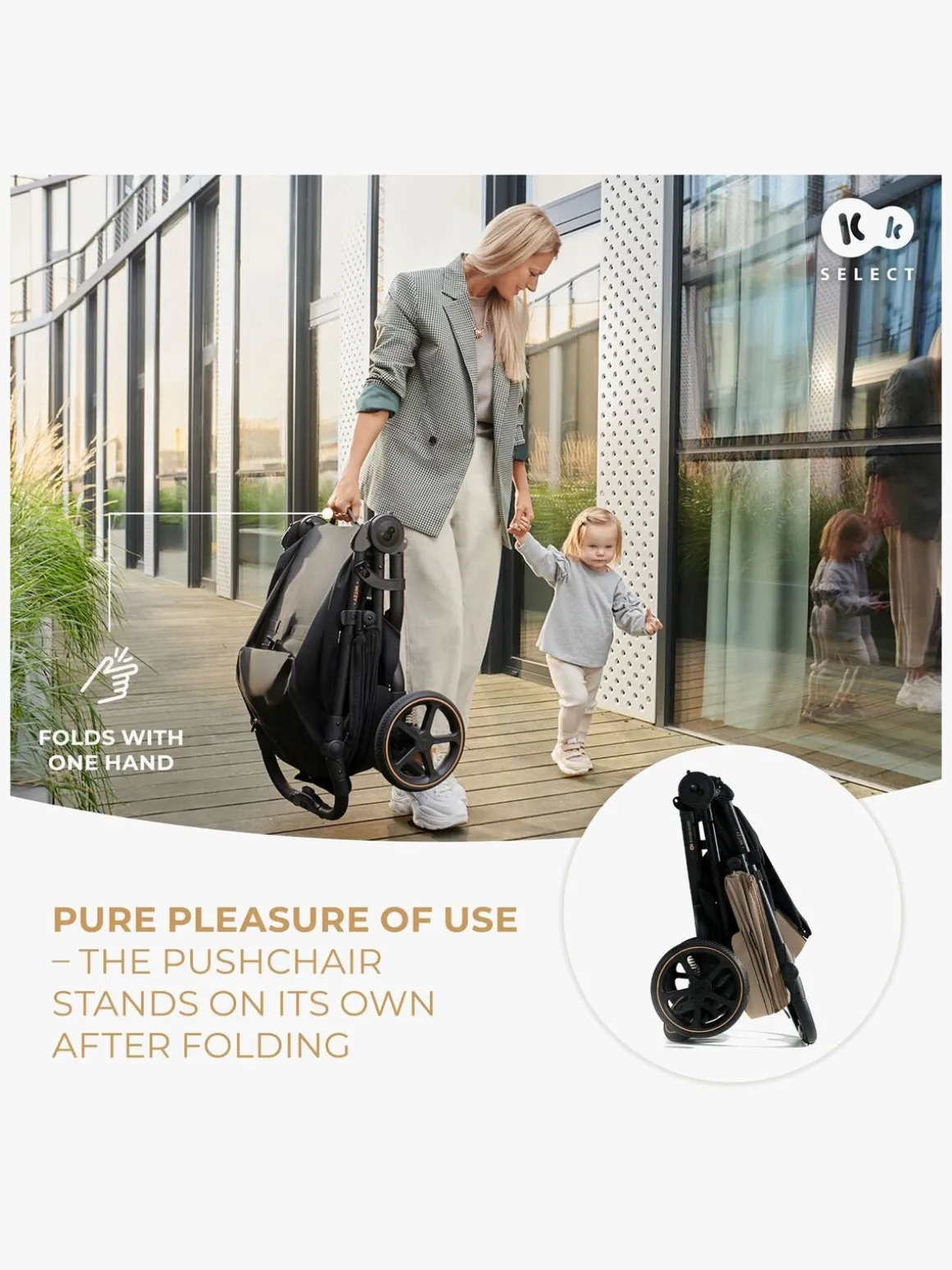 – Stor kaleche med vandtæt belægning og UPF50+.
