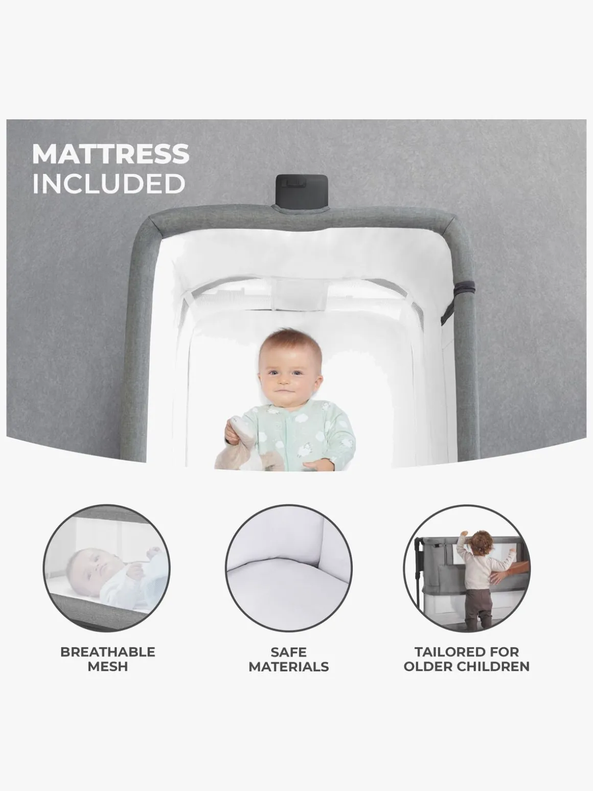 – Advarsel! På grund af vælterisiko bør sengen aldrig anvendes af børn, der kan sætte sig op eller rejse sig op.
