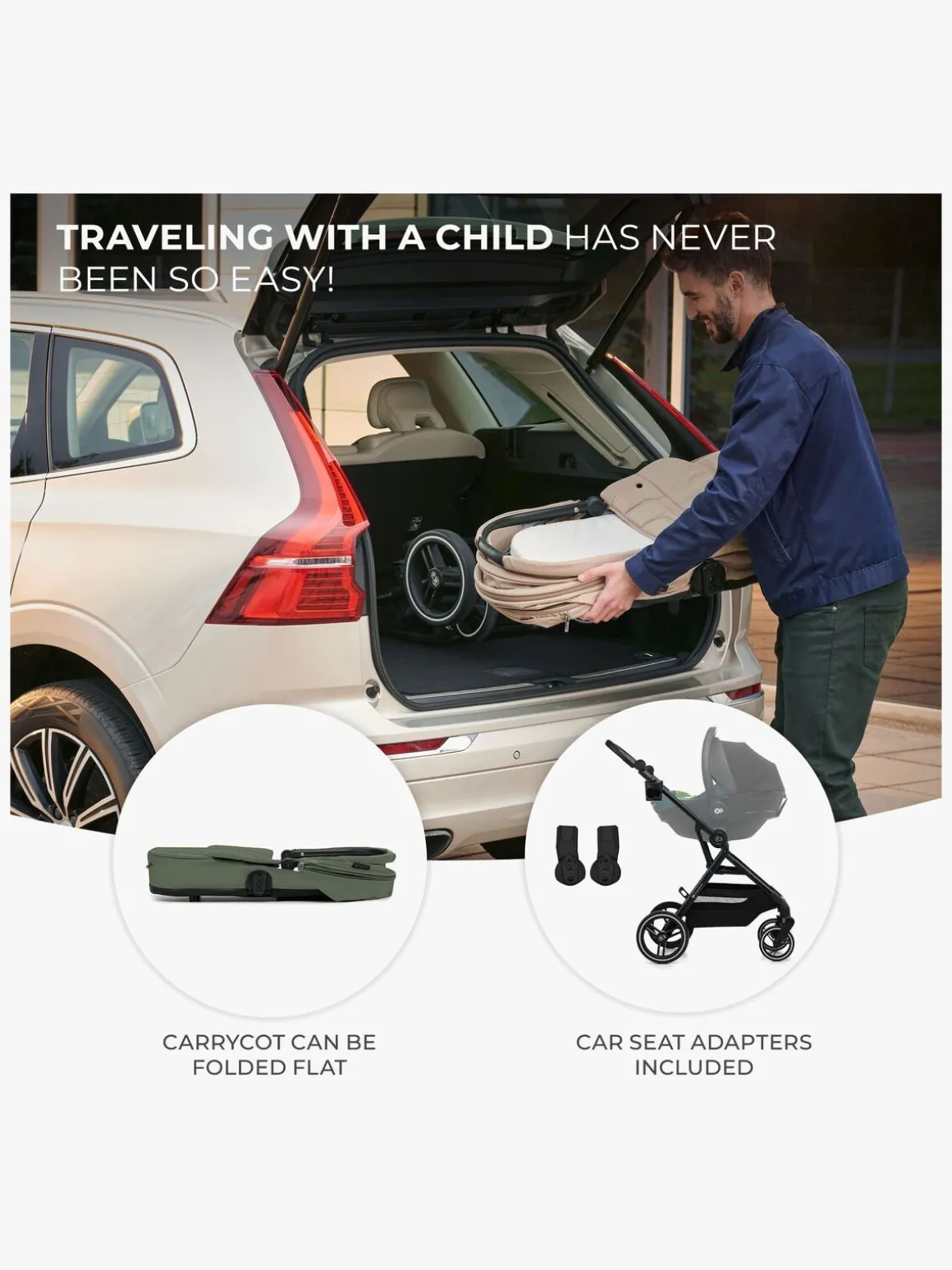 – Inkluderer: regnslag, myggenet, kørepose, kopholder, pusletaske, autostolsadapter.