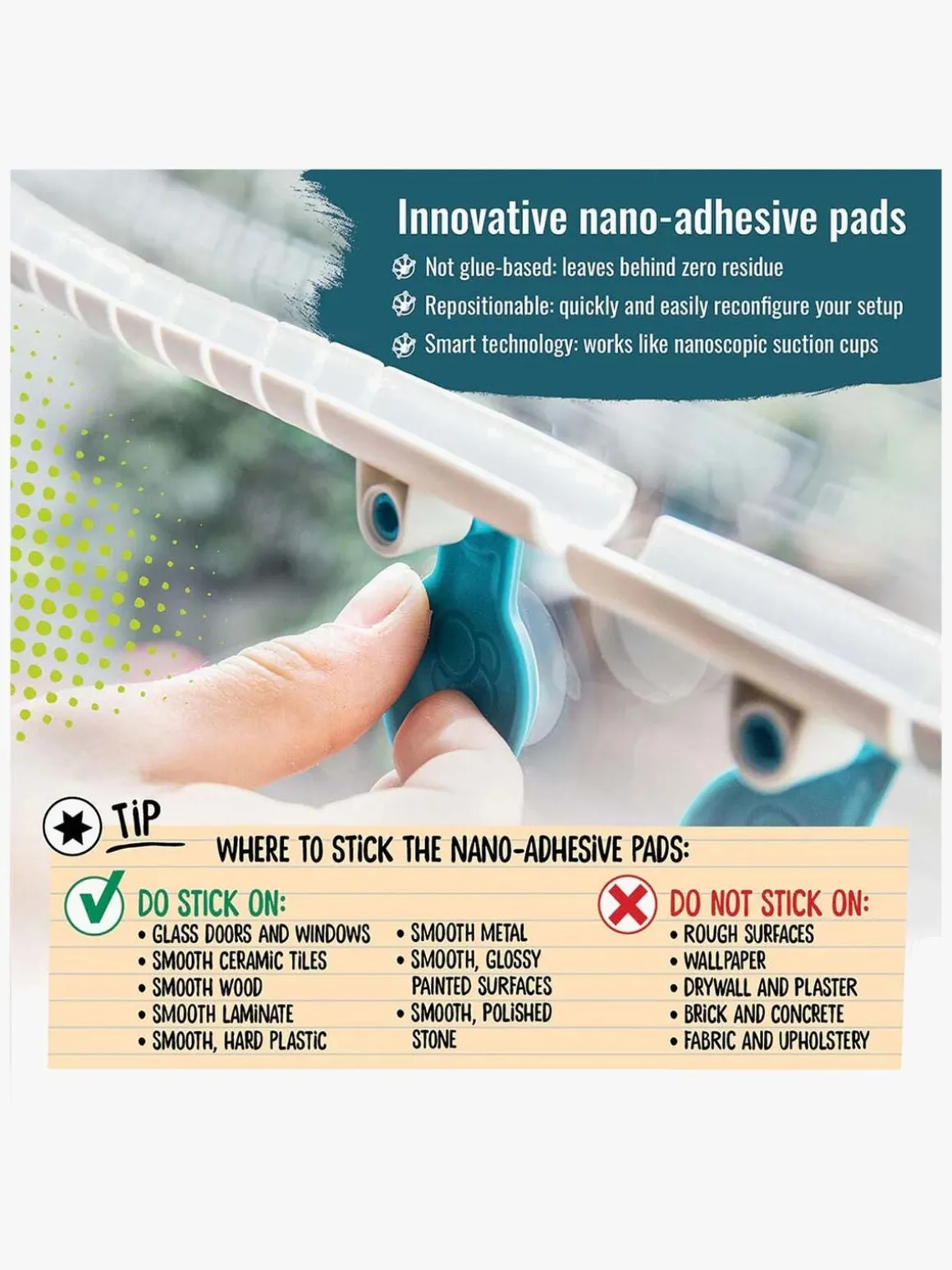 – Enkel montering med selvklæbende puder.