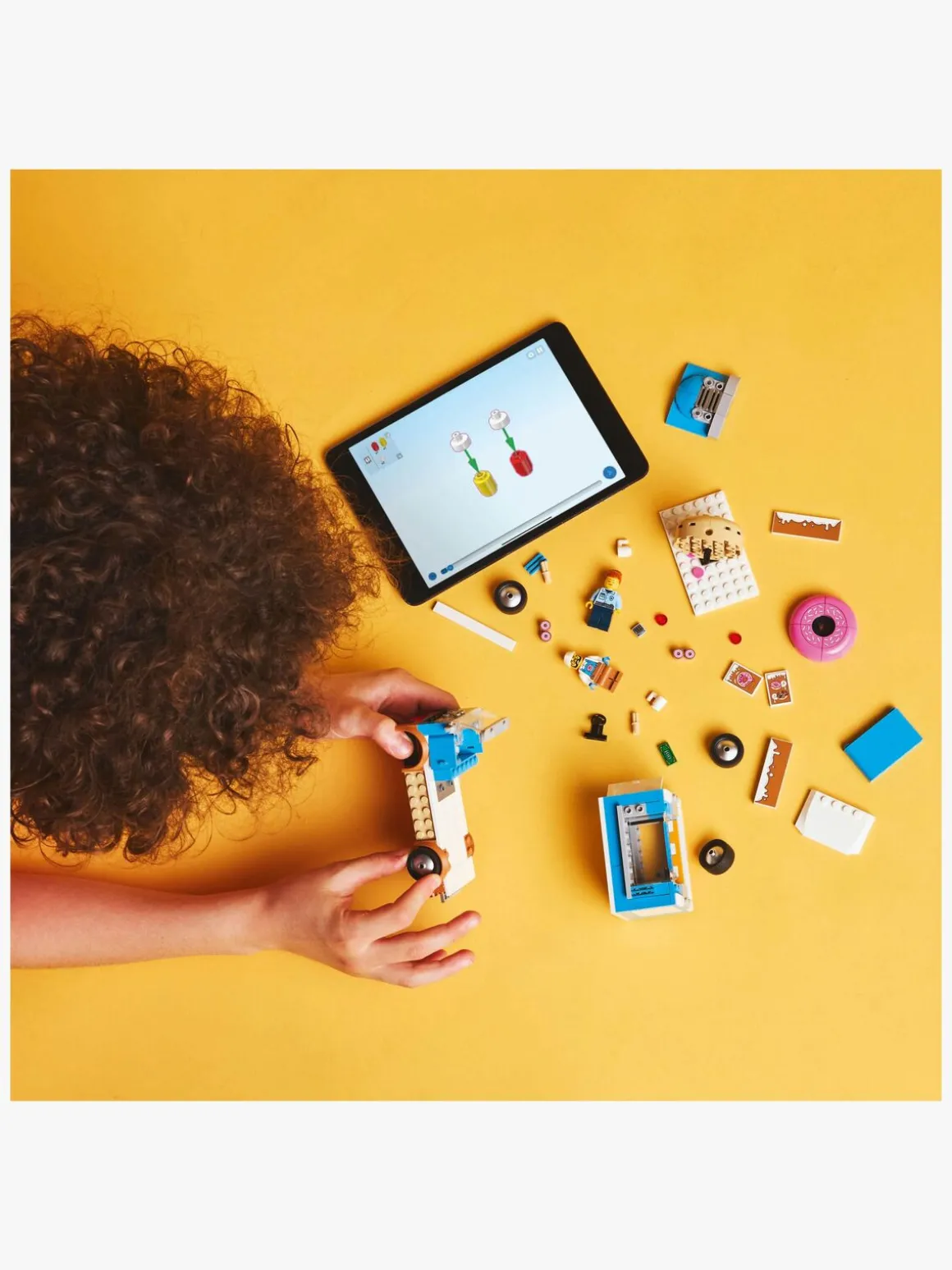 Der er byggevejledning til den mobile LEGO donutbutik i æsken. Du kan også besøge LEGO Builder appen, hvor børn kan udforske og gemme sæt, holde styr på, hvor langt de er kommet i byggeprocessen, samt zoome ind på, dreje og se modeller fra alle vinkler, mens de bygger.