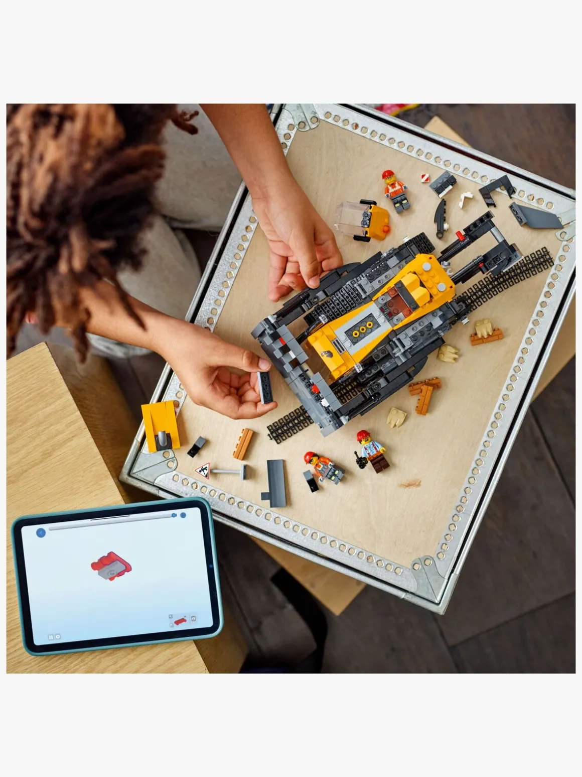 LEGO byg-selv-legesættet med et køretøj indeholder en trykt byggevejledning og har digital vejledning i LEGO Builder appen – en hjælp med intuitive zoom- og drejeværktøjer, så børn kan se modeller fra alle vinkler, mens de bygger.