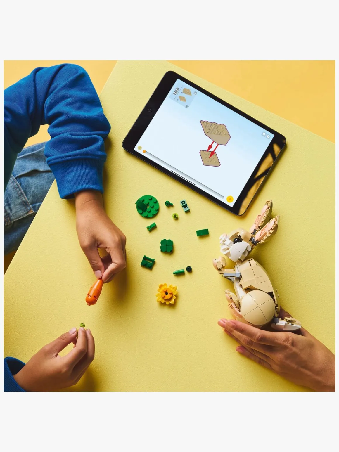 Piger og drenge kan bygge 3 forskellige bevægelige LEGO legesæt med dyretema med de samme klodser: en figur af en sød kanin med en solsikke og en gulerod, en legetøjslama med en plet grønt græs og en halv gulerod samt en sælfigur med en isflage og en fisk. Alle 3 scener er en fantastisk gave til børn og er velegnede til fantasifuld leg og udstilling.
