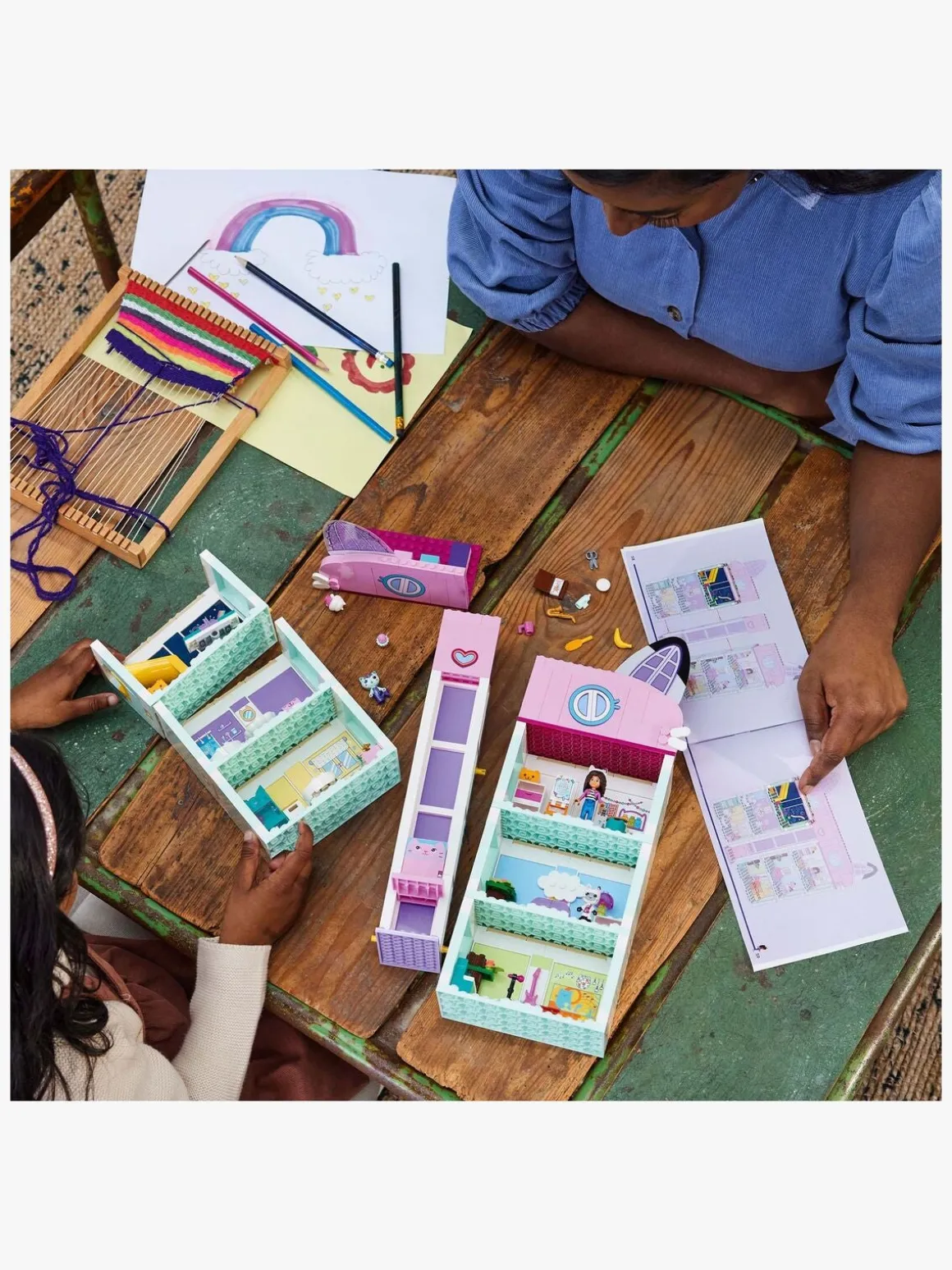 Gabbys dukkehus indeholder 8 farverige rum forbundet med en elevator, og hvert rum er fyldt med aktiviteter. F.eks. kan børn bage i køkkenet, bruge rutsjebanen i legerummet, være kreative i kunstlokalet, spille klaver i musiklokalet, slappe af på badeværelset, tage en lur i soveværelset eller gå optil taget og feste på det drejelige dansegulv. Børn kan dele eventyret med 4 populære figurer fra serien: Gabby, Pandy Pote, Muffins og Havkat. Der medfølger en byggevejledning med billedhistorie, og LEGO Builder appen indeholder intuitive zoom- og drejeværktøjer. En stor startklods sikrer, at det sjove byggeri begynder med det samme.