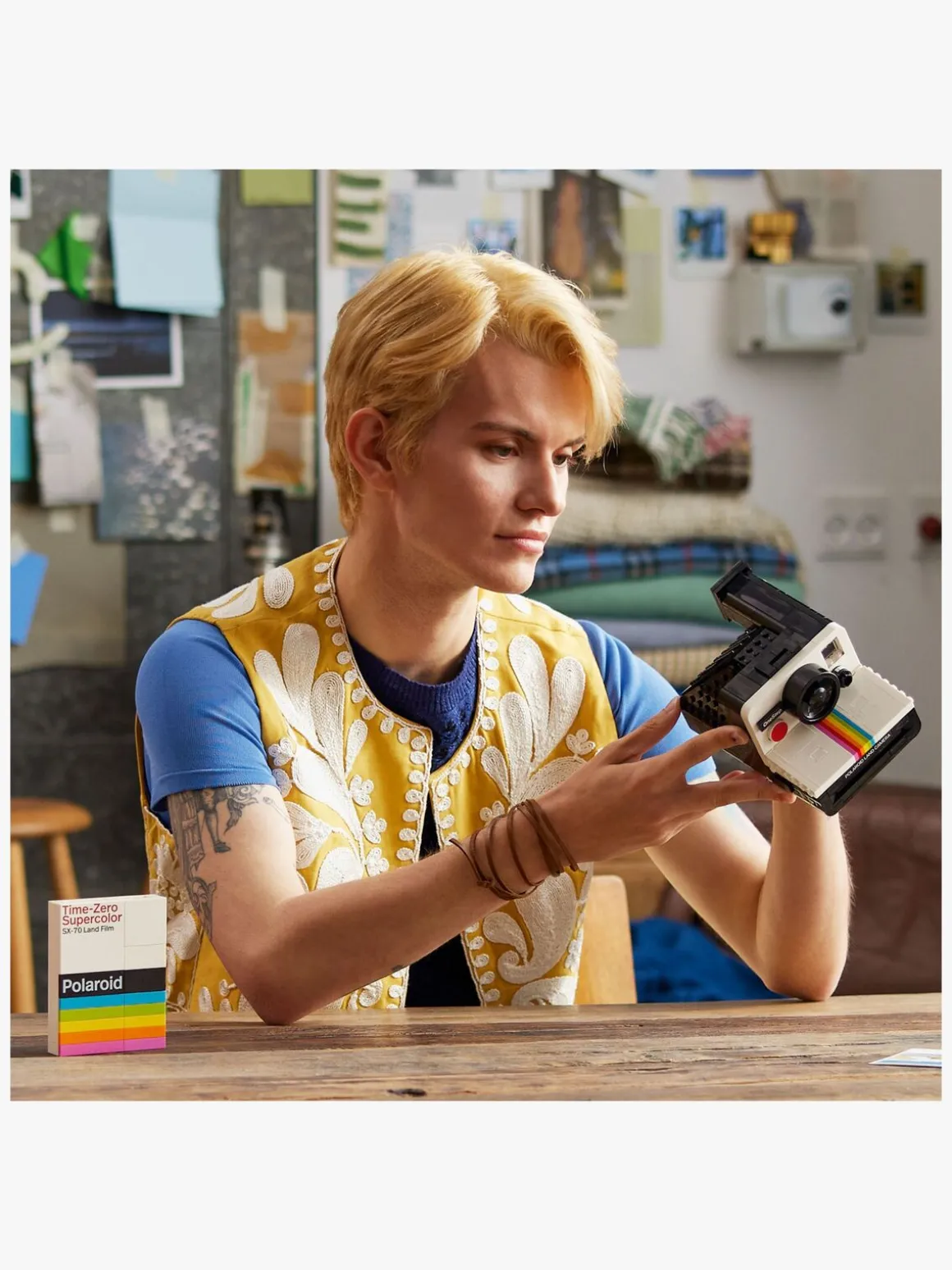 — Indeholder en Time-Zero Supercolor SX-70 Land Film-pakke, der kan bygges