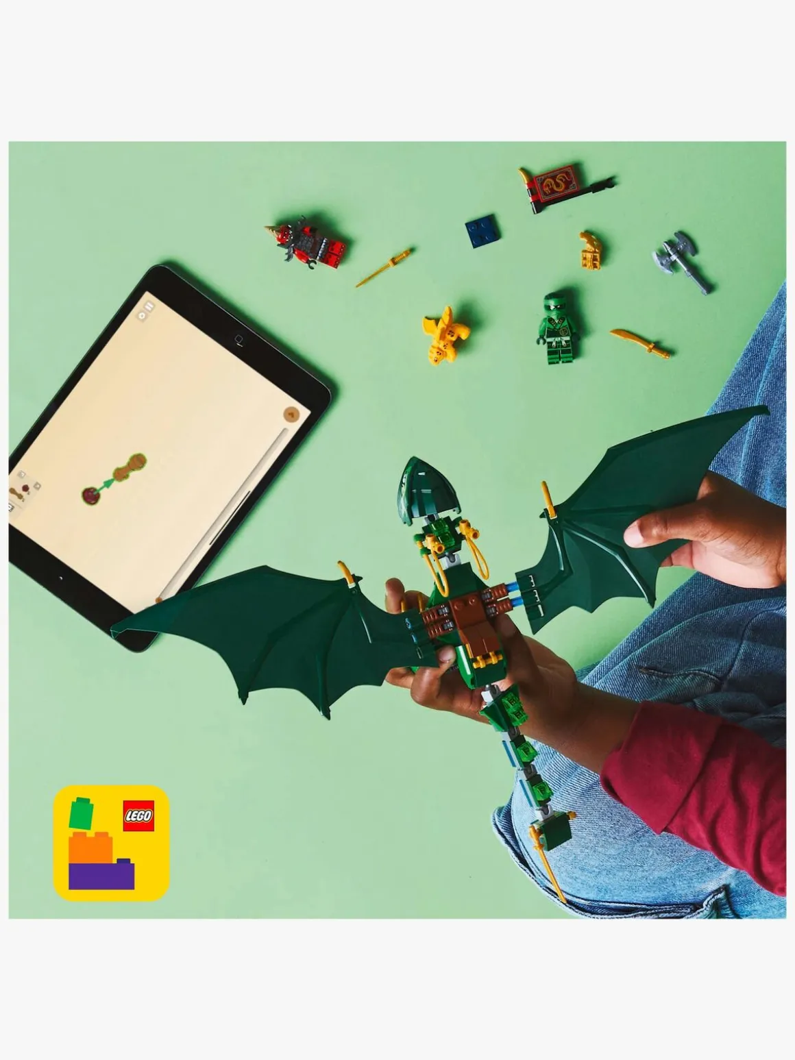— Legetøjsdrage til at genskabe flyvescener fra sæson 3 af NINJAGO: Dragerne vågner