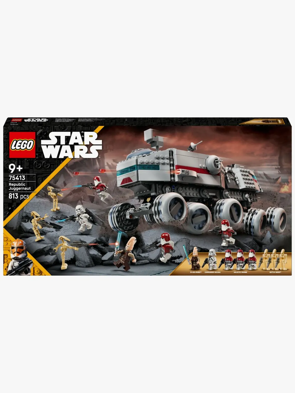 Legesættet indeholder 5 LEGO Star Wars minifigurer: Ki-Adi-Mundi med et lyssværd, kommandør Bacara og 3 galaktiske marinesoldater, hver med en blaster, samt 3 LEGO figurer af kampdroider med blastere. Anbring LEGO minifigurerne i cockpittet foran og bagi, i hovedrummet hvor der er siddepladser og våbenstativer, på observationsposten, som kan hæves, og i det bageste tårn med en knopskyder.