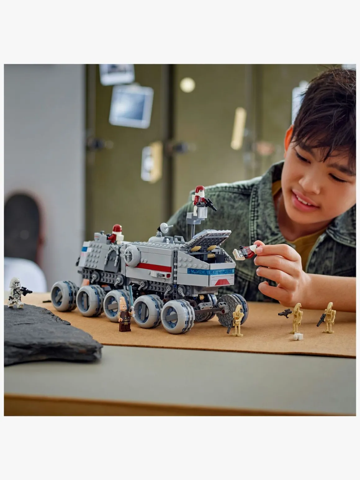 Gør børns kreative oplevelse endnu sjovere med LEGO Builder appen, hvor de kan zoome ind på og dreje en digital 3D-version af Star Wars køretøjet, mens de bygger. Byggesættet indeholder 813 elementer.