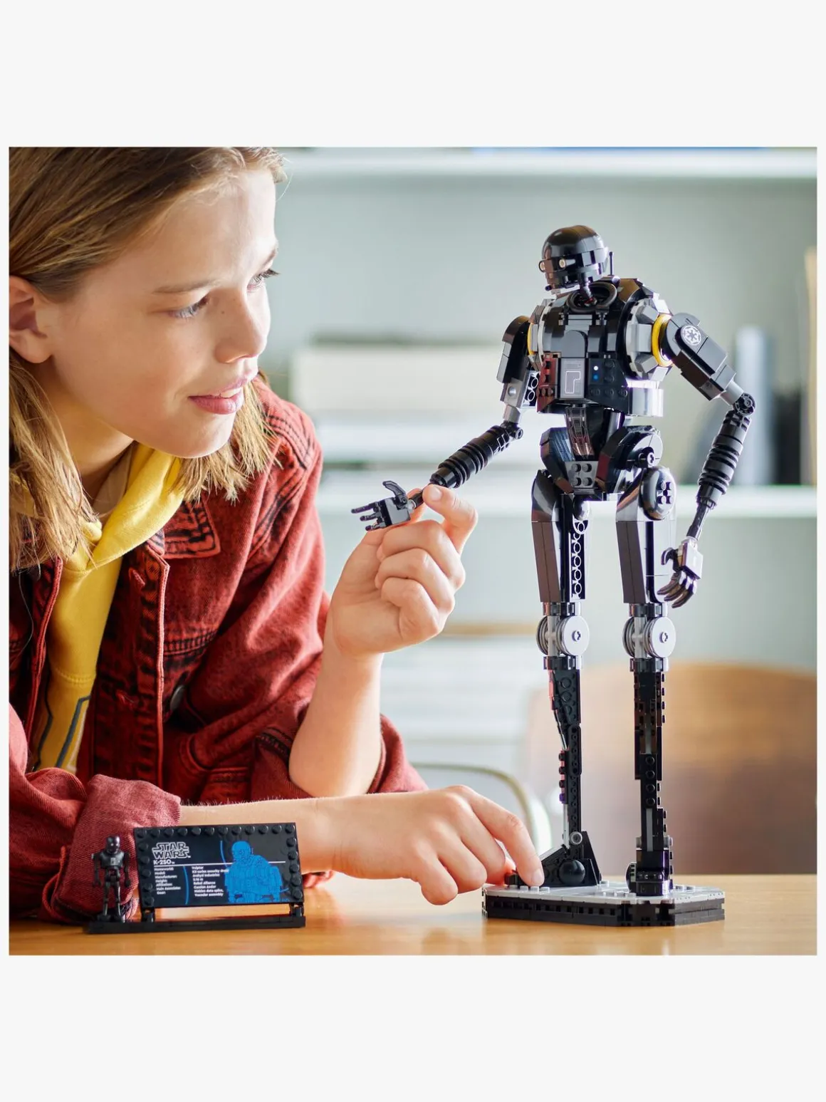 Byg-selv-sættet er en genial Star Wars gaveidé til fans og indeholder også en K-2SO-faktaplade og en LEGO droidefigur af K-2SO i standardstørrelse som kronen på værket i dette iøjnefaldende og fantasifyldte stykke indretning.