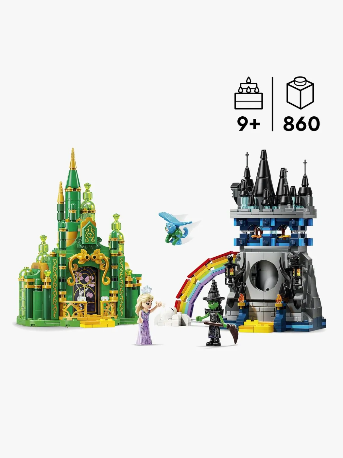 LEGO Wicked sæt rummer timevis af ubegrænset leg, når fans genskaber filmscener eller selv digter historier. Byggeriet er lige så sjovt som legen og giver 2 superseje udstillingsgenstande. Indeholder 860 elementer.