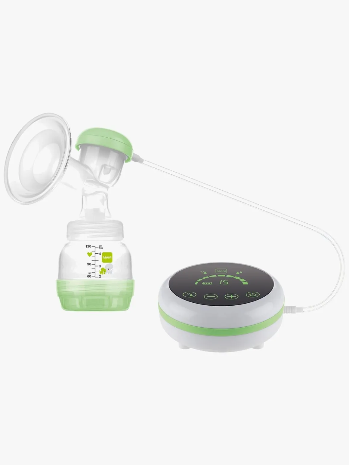 Den elektroniske pumpe har to niveauer – stimulering og ekspression. Du kan også justere sugeniveauet i ni trin. På den måde kan du finde en indstilling, der passer dig! Den elektroniske pumpe har et opladeligt batter, der medfølger.