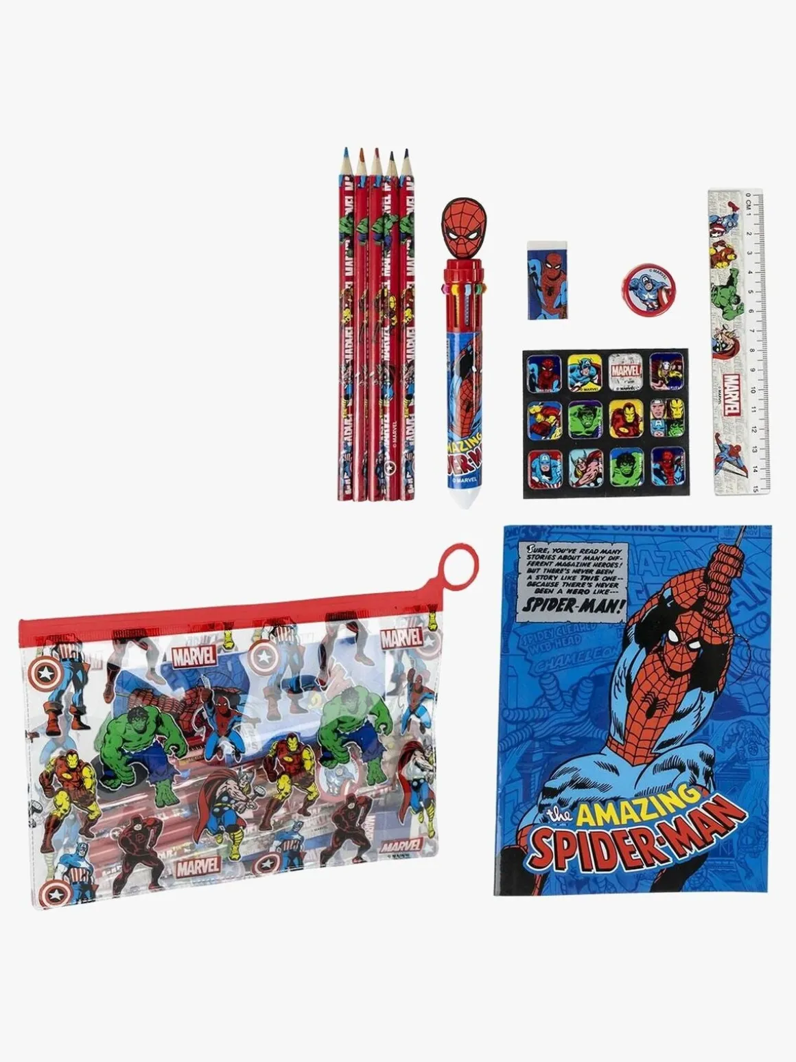 – Indeholder: 1 penalhus, 1 notesbog, 4 blyanter, 1 kuglepen, 1 lineal, 1 viskelæder, 1 blyantspidser, 1 klistermærkeark.