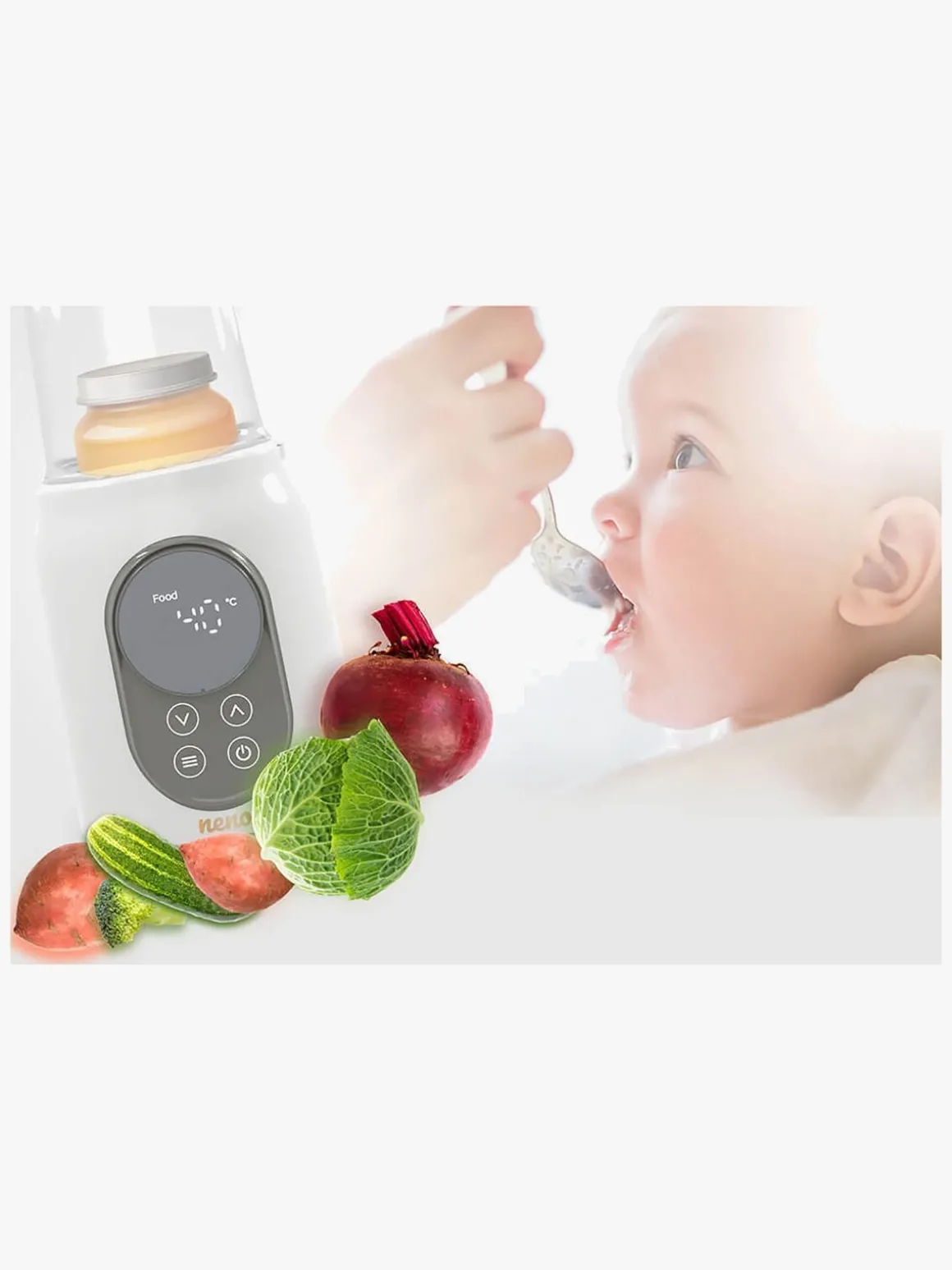 – en 6-i-1-enhed, der kan bruges til: sterilisering, alm. opvarmning, hurtig opvarmning, mælkeopvarmning, optøning og til at holde en jævn temperatur.