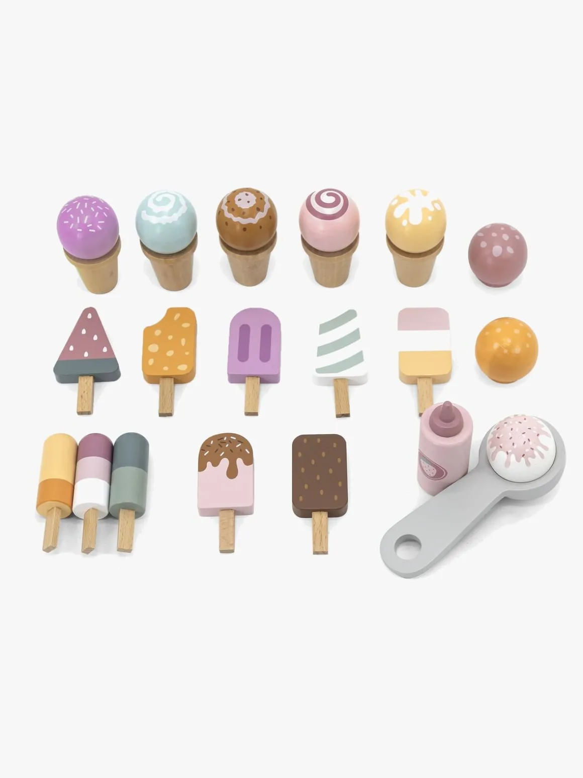 – Indeholder en isvogn med flere forskellige slags iskugler, vafler, pindeis, jordbærtopping og en isske.