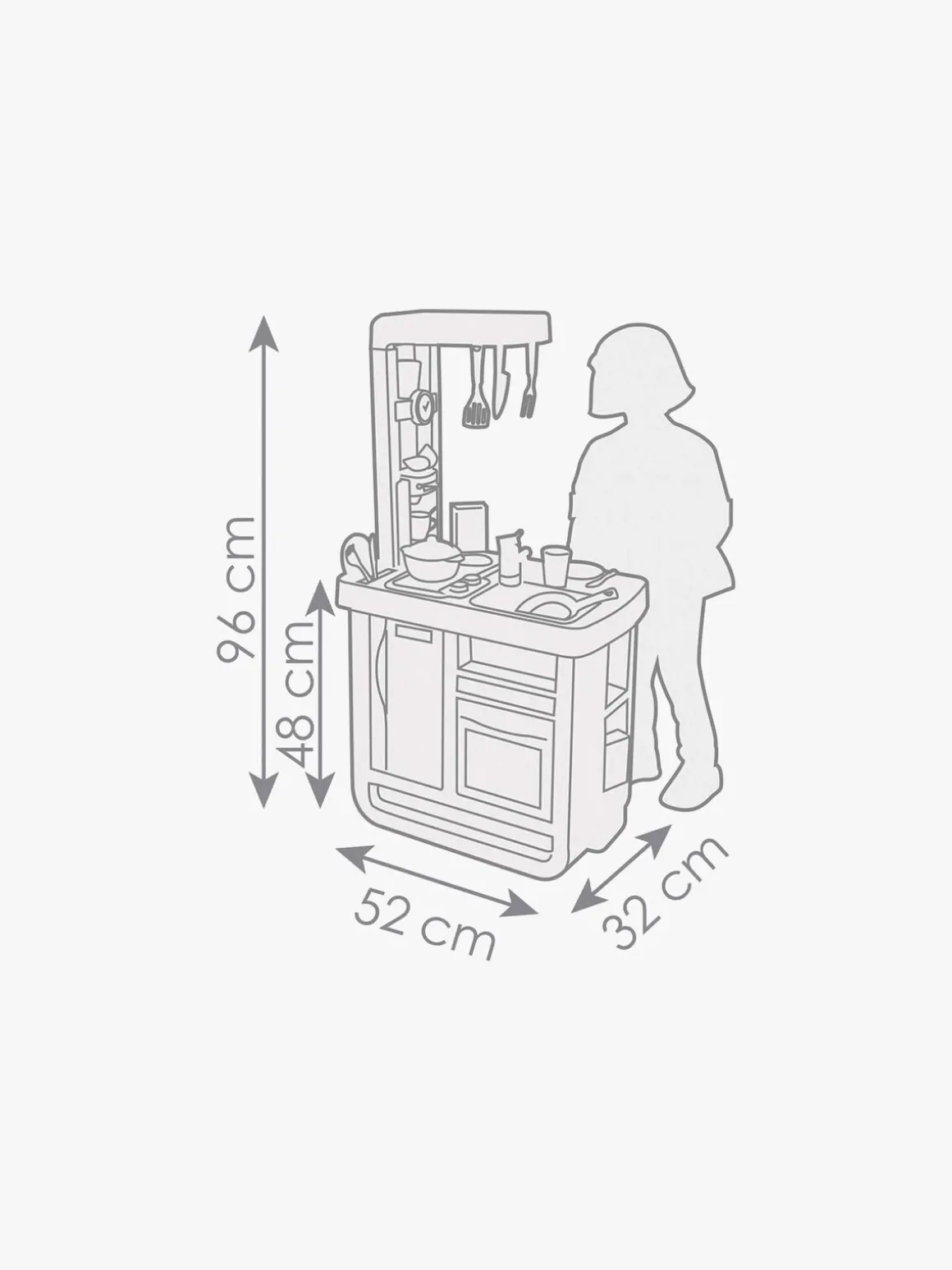 – Mål: H 95,7 x B 32,5 x L 52,2 cm.