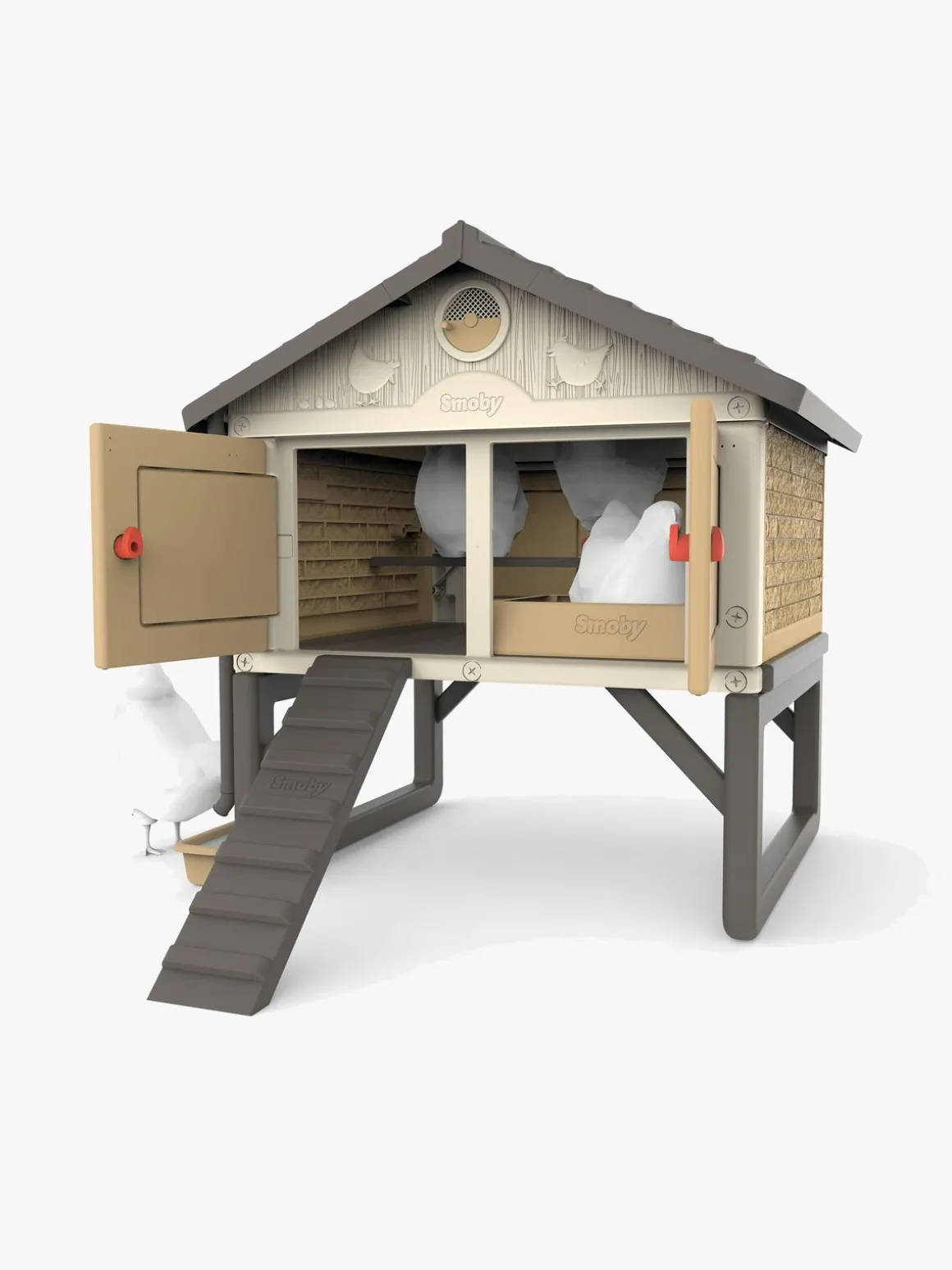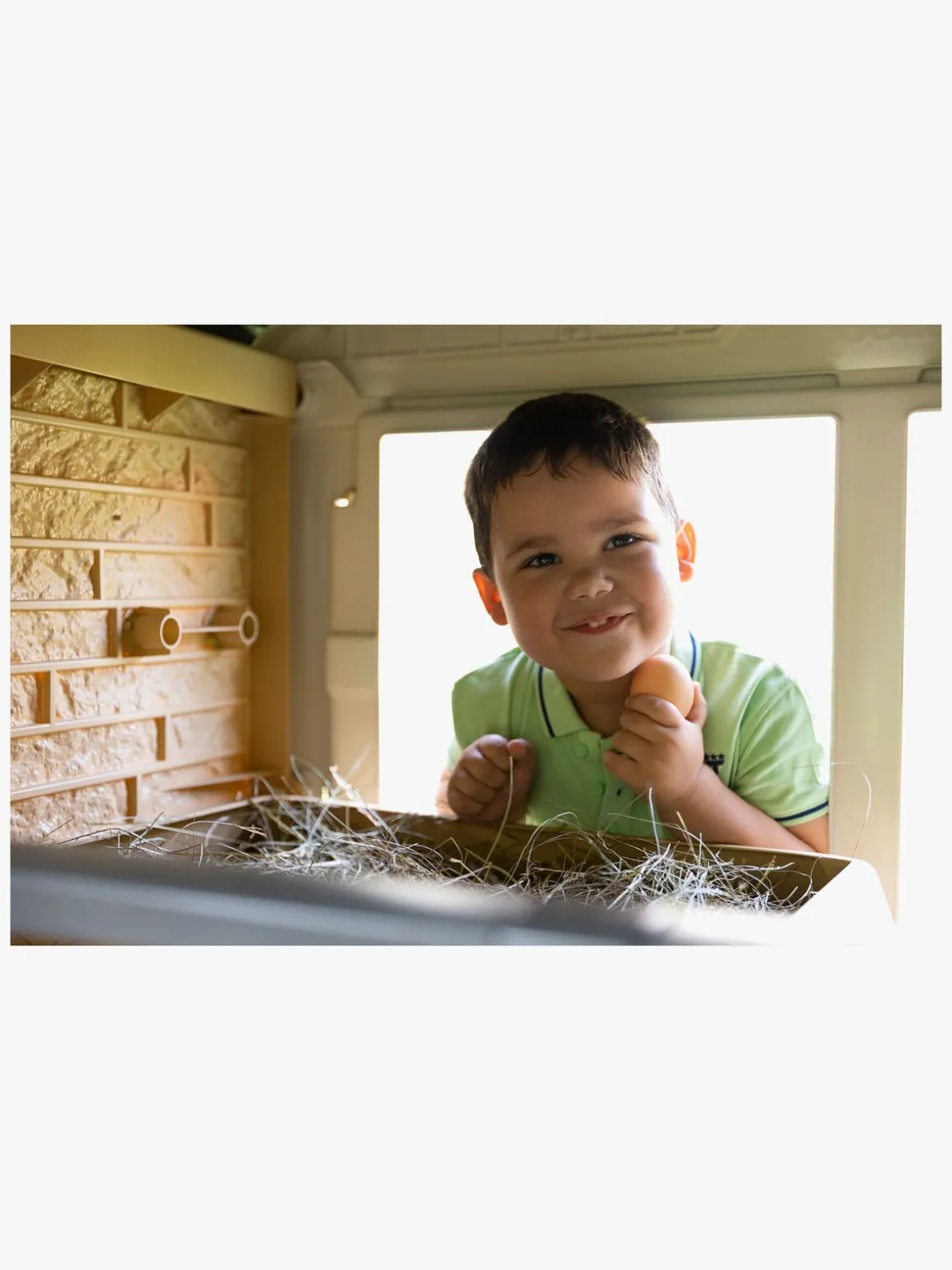 – Et kunstigt æg, en vandbeholder og et faktahæfte til børn medfølger.