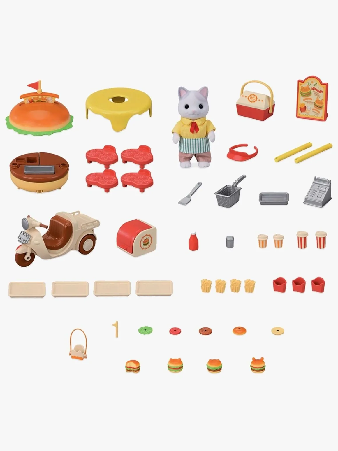 – Indeholder: 1 kattefigur, 1 hamburgerbod, 1 cykel, 40 tilbehør.