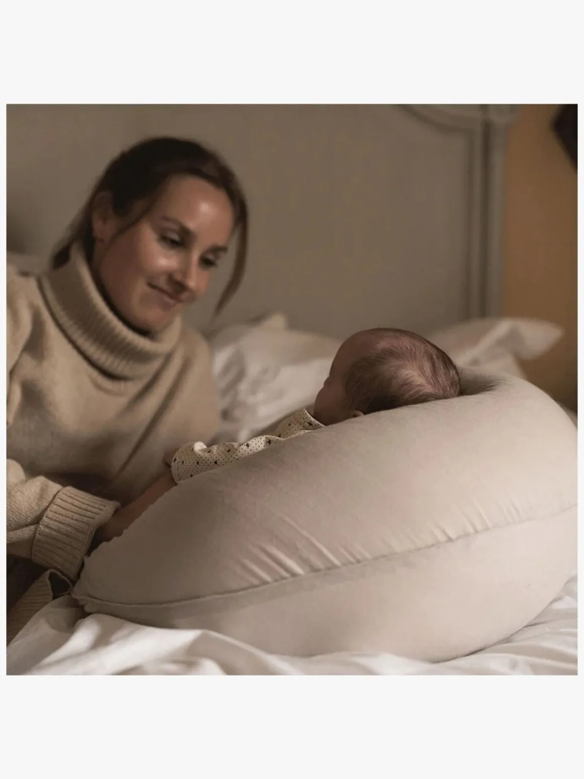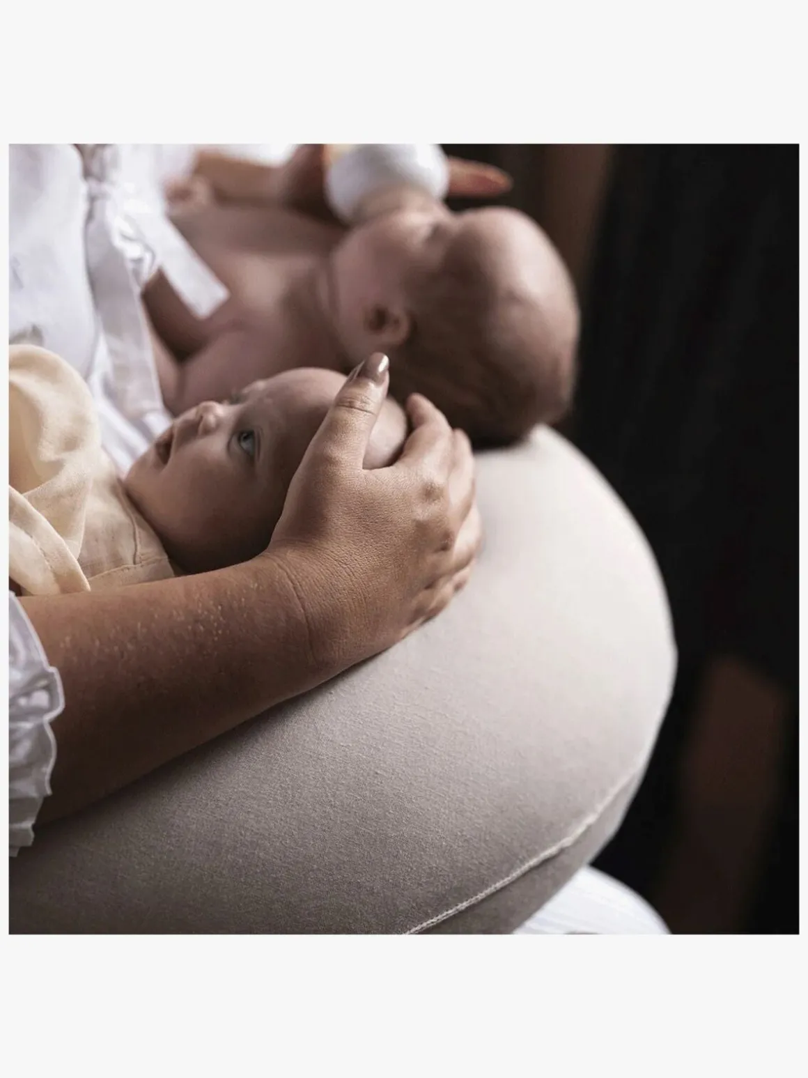 – Ekstra lange ender, der kan bindes sammen for at skabe et hyggeligt sted at sidde eller rundt om livet for optimal amme-komfort.