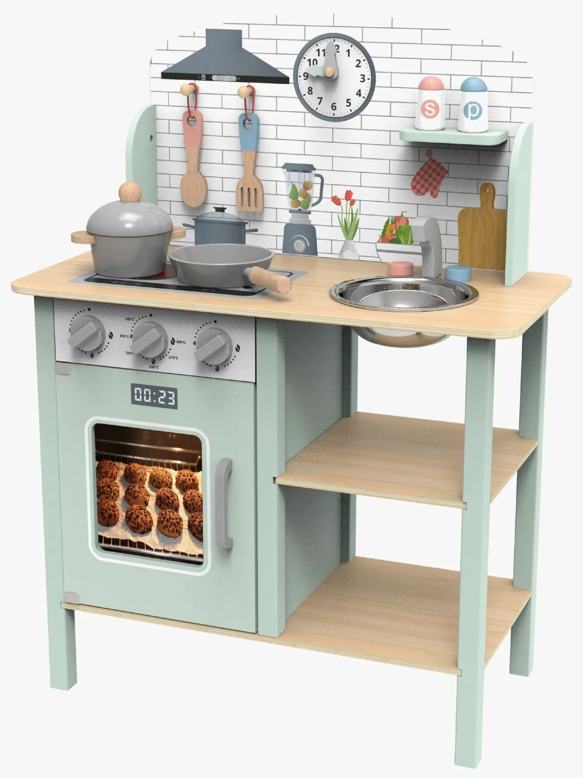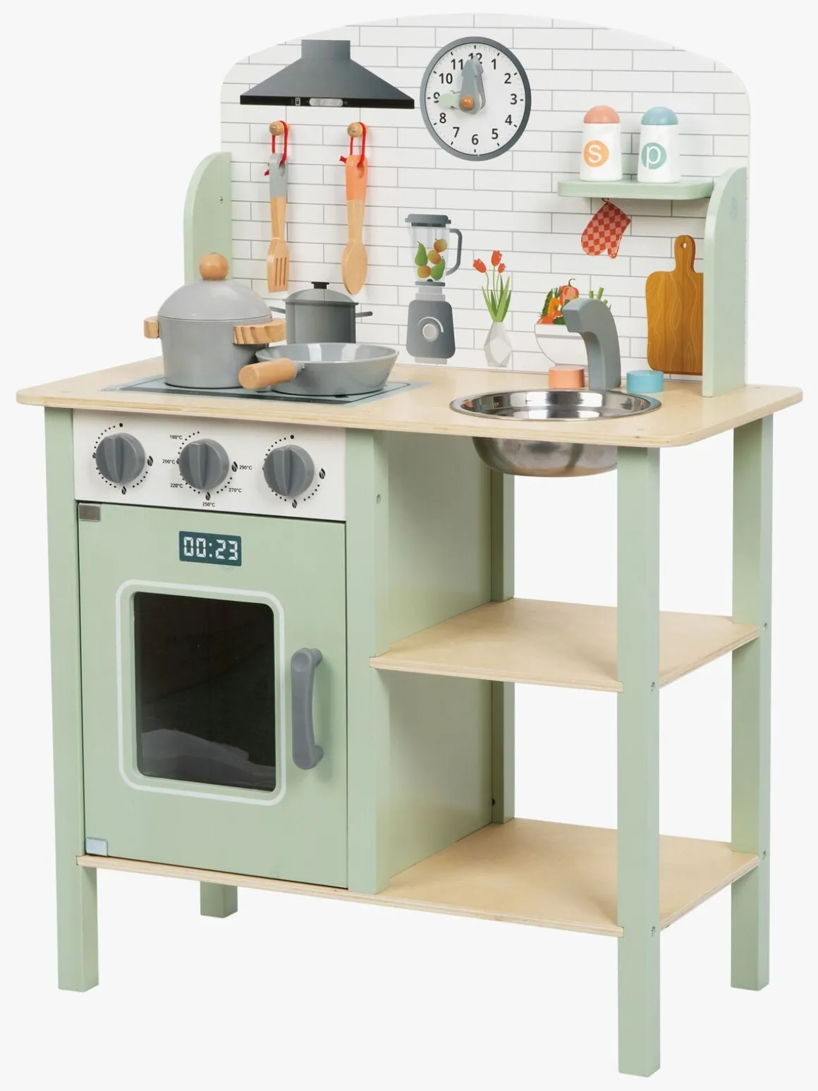 – Indeholder: 1 legekøkken, 1 gryde, 1 stegepande, 1 grydeske, 1 paletkniv, 1 skål, 1 salatskål, 1 peberkværn.