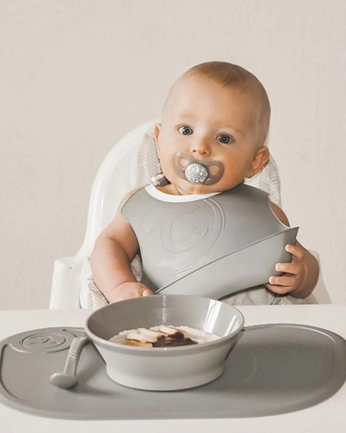 Twistshake Dyb Tallerken m. Låg, Grå